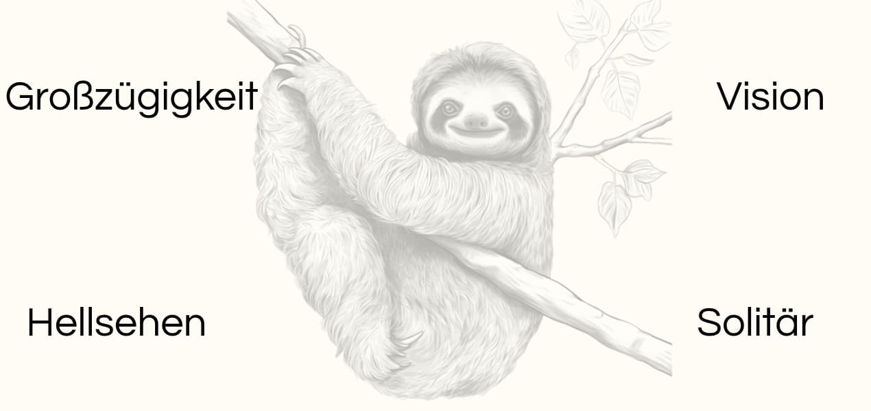 Bekannt für seine legendäre Langsamkeit, faul, langsamer als die Schildkröte, verbringt die meiste Zeit, dass der Körper unter einem Zweig suspendiert ist.