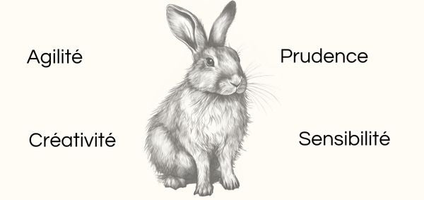 - Symbole de créativité, de prudence, d’agilité et de sensibilité, le lapin vous relie à votre intuition vive