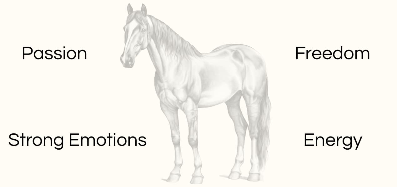 The horse is a symbol of passion and appetite for freedom. Among many totems, the horse is the emblem of the motivation that carries us through life. People who feel connected to the horse possess this zest for life. You have strong emotions and passionate desires. You have the ability to express yourself freely and confidently in social environments. Horses give you great energy and the will to succeed in life. With the horse, you have that dominant instinct that doesn't want to submit.